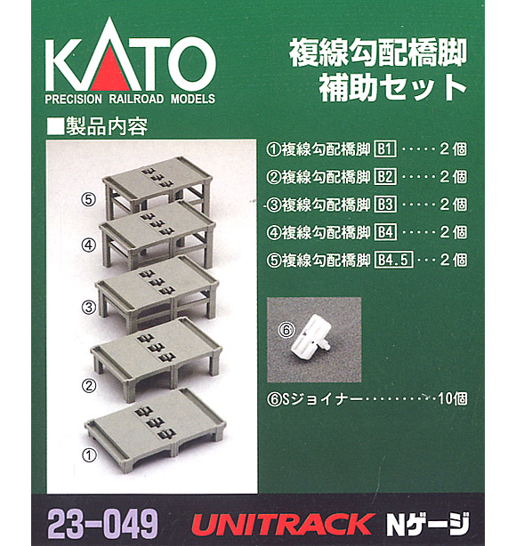 ・基本セット・・・複線勾配線路×2本、複線勾配橋脚(A1?A4)×各2個、複線橋脚×2個、架線柱台(ワイド架線柱対応)×10個、Sジョイナー×10個