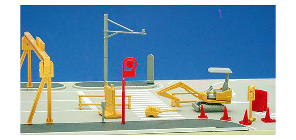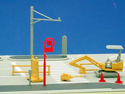 ・バス停・カーブミラー・渋滞検知機・信号機アダプター・パーキングメーター)(消火栓標識・コーン・看板・矢印板)(油圧ショベル・ハンドガイドローラー・サイン灯・仮設信号機・バリケード・カーブミラー・防護桁