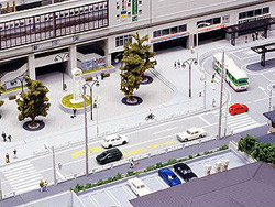 ・5枚のプレート(5プレート連結時のサイズ1240×220mm)を接続して、駅前広場やバスターミナルなどの駅前の情景を演出可能。