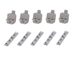架線柱を支えるための台です。ユニトラック線路に取り付ける場合の「地上用架線柱台」と、単線高架線路に取り付ける場合の「高架用架線柱台」が各16個ずつ入っています。