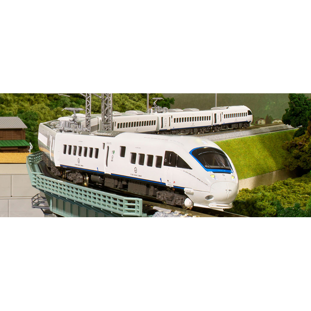 ・JR九州の交流特急形車両885系。制御振子式で活躍するアルミ製の白い独特のボディスタイルを的確に再現
