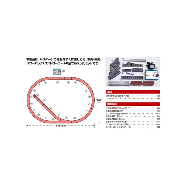 HOゲージを身近に楽しんでいただくためのアイテムとして「車両」「線路」「パワーパック」をひとつのセットにまとめました。