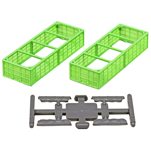 ・金網の内側に丸めた状態の雨よけカバーを灰色の別部品で再現。抜けた金網表現と共に、空荷での返却運用をリアルに再現。