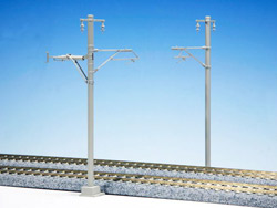 ・コンクリート柱と片側支持アームで構成される、単線ワイド架線柱をリアルに再現。長・短 2種の架線支持アームを表現。