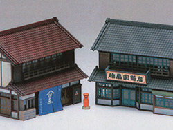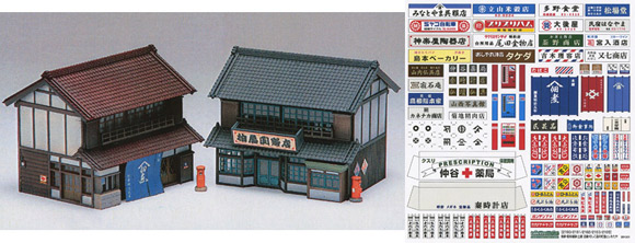 階下の一隅に取り付けるタバコ屋の張り出しや古風なポスト、各種看板のステッカーなど、至れり尽くせりの内容です。