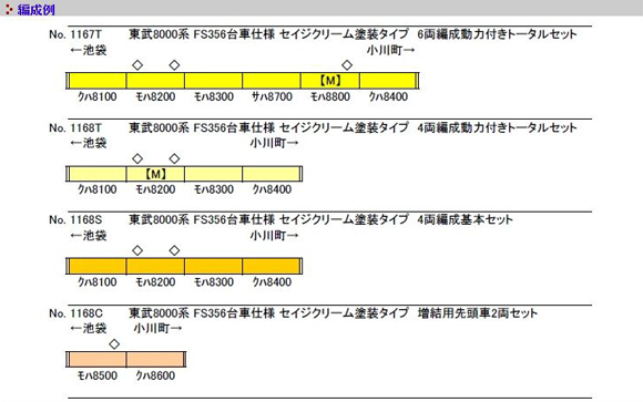 - 東武8000系 FS356台車仕様 セイジクリーム塗装タイプ 4両編成トータルセット(塗装済キット) [1168T]]
