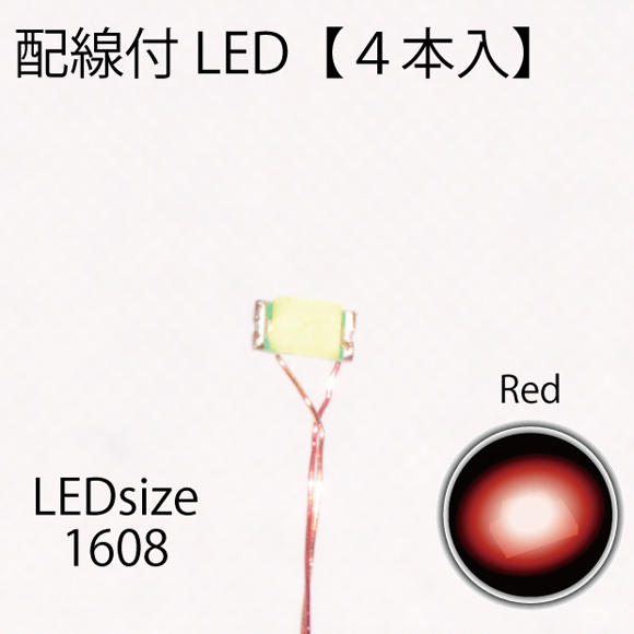 配線付LED(色:赤/サイズ:1.6×0.8mm)(4本入り) [211183]