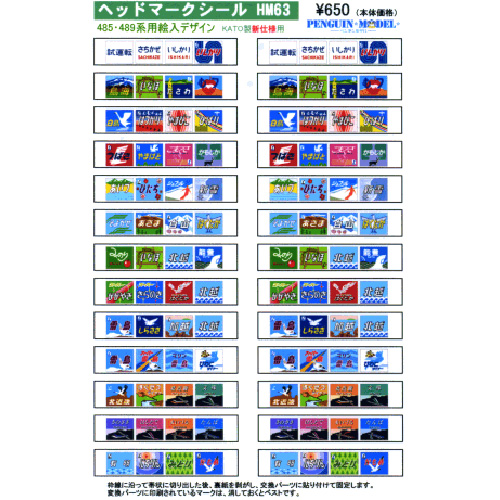 - ヘッドマークシール 485・489系用絵入デザイン(KATO製新仕様用) [PG-HM63]]