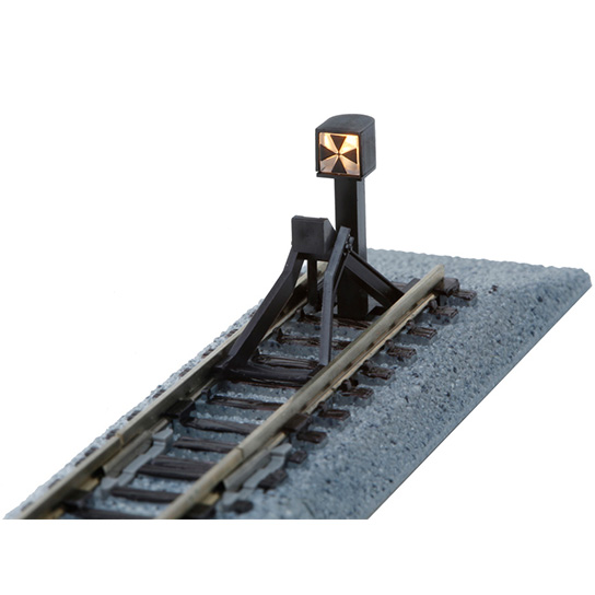 ・線路が通電しているときに標識灯が点灯するので、引き込み線の本数が多い線路プランや、ターンテーブルからのびる留置線などでご活用いただくと、どこの線路が今開通しているのか一目で分かります。