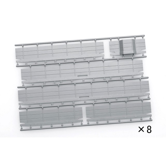 ●ワイドレール化したポイントPR(L)541-15(F),PR(L)280-30(F),PX280(F)のダミー駆動部部分に対応した側壁8枚、ポイントの直線側用の長さ140mmとなる側壁8枚、ワイドカーブレールC541-15の内側もしくはワイドレール化したポイントPR(L)541-15(F),PR(L)280-30(F)の内側の長さの側壁8枚、ワイドカーブレールC541-15の外側の長さの側壁8枚、ワイドストレートレールS72.5の長さの側壁8枚、ワイドストレートレール長さの側壁8枚の48枚入