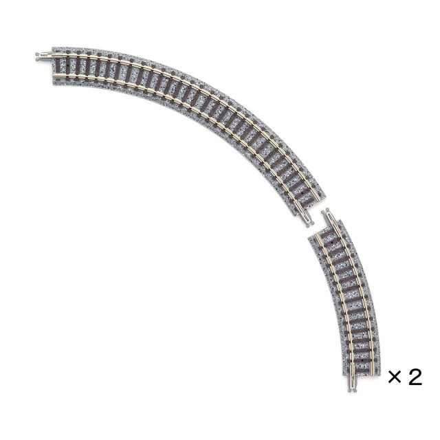 ●ミニカーブレールは、R140mmとR177mmのカーブレールで、スーパーミニカーブレールの外側に、トミックスの標準間隔37mmを保って配置することができる小さな半径のカーブレールです