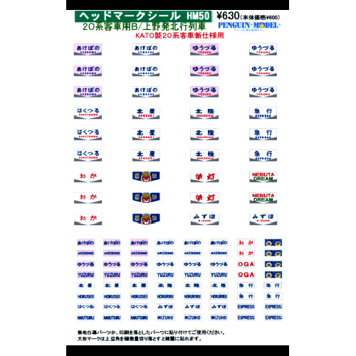 - ヘッドマークシール 20系客車用B/上野発北行列車 [PG-HM50]]