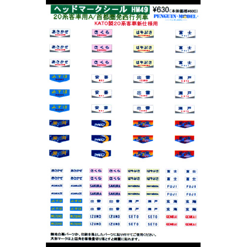 - ヘッドマークシール 20系客車用A/首都圏発西行列車 [PG-HM49]]