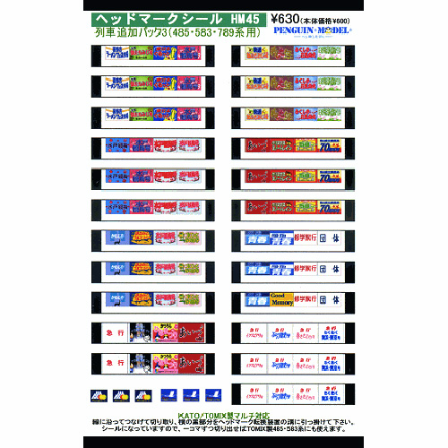 - ヘッドマークシール 列車追加パック3(485・583・789系用) [PG-HM45]]