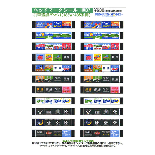 - ヘッドマークシール 列車追加パック1(183W・485系用) [PG-HM37]]