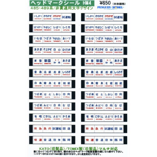 - ヘッドマークシール 485・489系/非貫通形用文字デザイン [PG-HM4]]