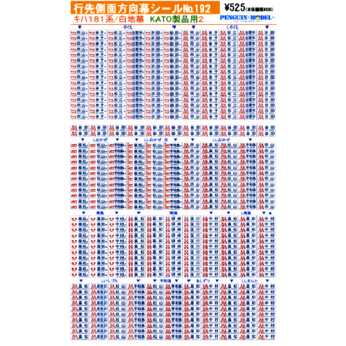 - 行先側面方向幕シール キハ181系/白地幕(KATO製品用2) [PG-192]]