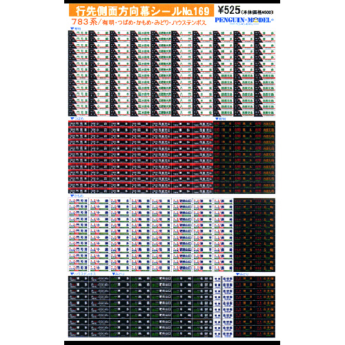 - 行先側面方向幕シール 783系/有明・つばめ・かもめ・みどり・ハウステンボス [PG-169]]