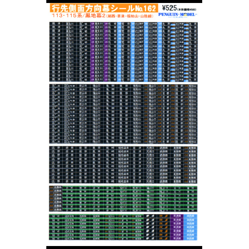 - 行先側面方向幕シール 113・115系/黒地幕2(湖西・草津・福知山・山陰線) [PG-162]]
