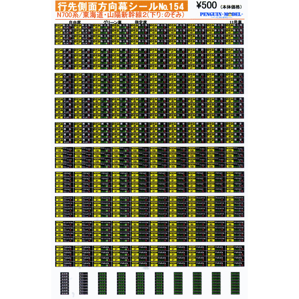- 行先側面方向幕シール N700系/東海道・山陽新幹線2(下り:のぞみ) [PG-154]]
