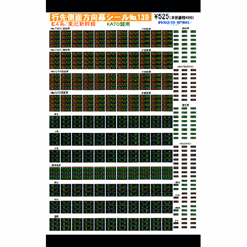 - 行先側面方向幕シール E4系/東北新幹線(KATO製用) [PG-139]]