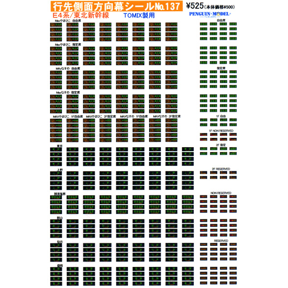- 行先側面方向幕シール E4系/東北新幹線(TOMIX製用) [PG-137]]