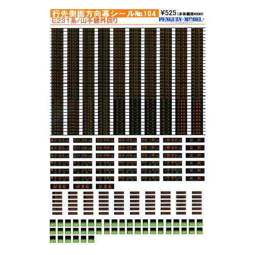 - 行先側面方向幕シール E231系/山手線外回り [PG-104]]