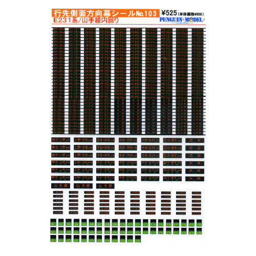 行先側面方向幕シール E231系/山手線内回り [PG-103]]