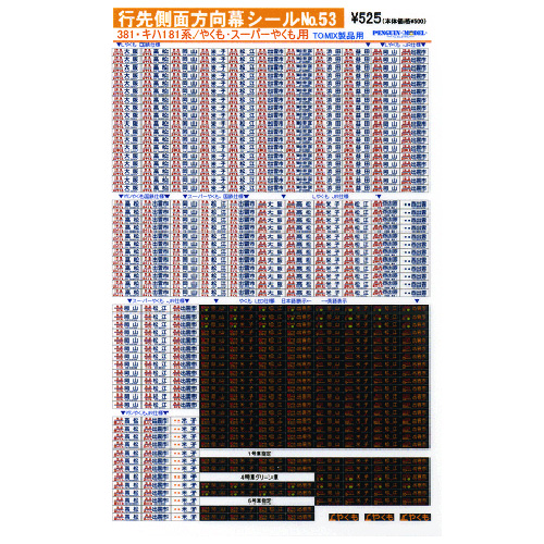 - 行先側面方向幕シール 381・キハ181系/やくも・スーパーやくも用(TOMIX製品用) [PG-53]]