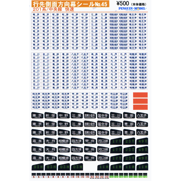 - 行先側面方向幕シール 201系/中央線 快速 [PG-45]]