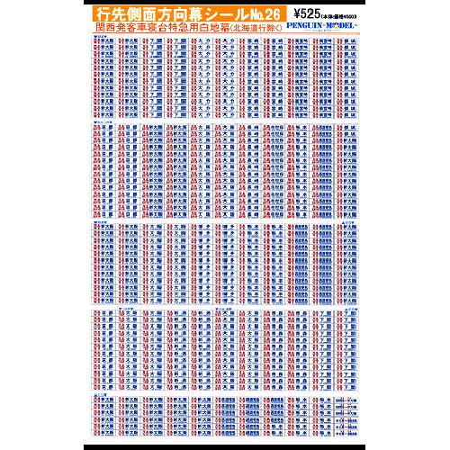 - 行先側面方向幕シール 関西発客車寝台特急用白地幕(北海道行除く) [PG-26]]