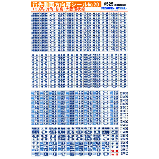 - 行先側面方向幕シール 103系/片町・桜島・大阪環状線 [PG-20]]