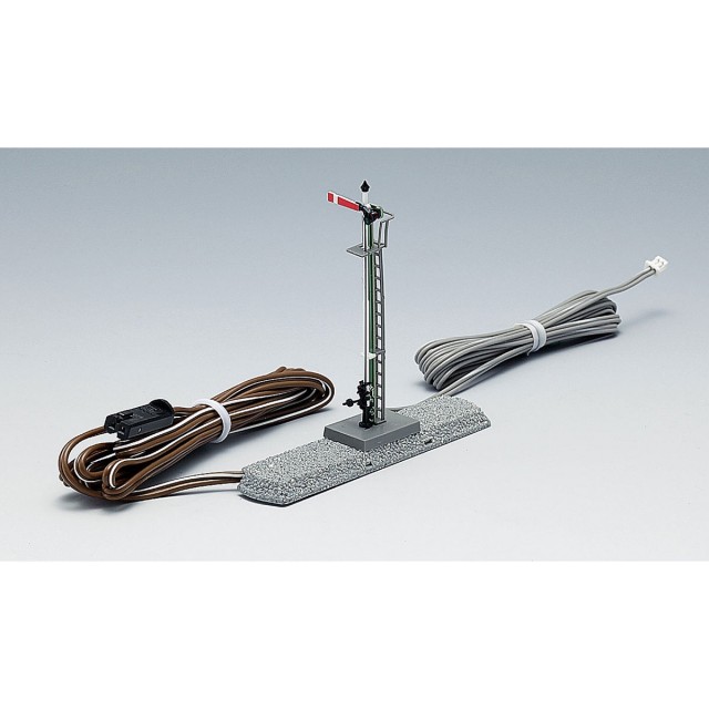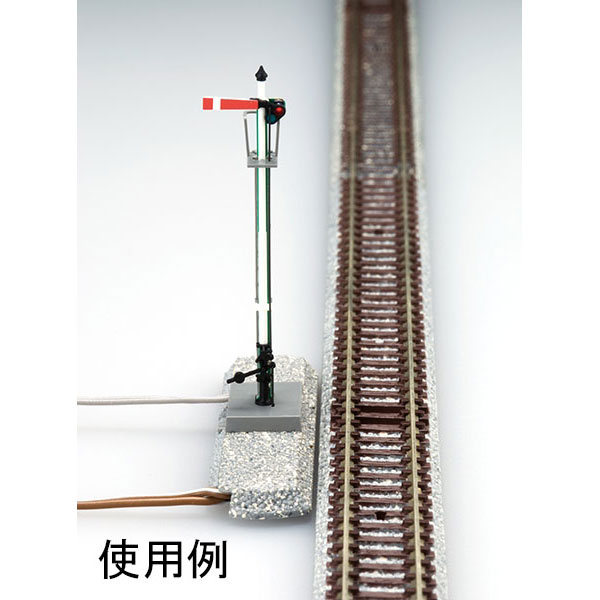●信号ランプを夜間用に点灯可能(実物の腕木信号機のランプは周囲が明るいときは消灯しています)、白色LEDを使用し実物同様にカラーレンズを通すことにより腕木が水平時に赤、斜め下降時に青に色灯が変わる