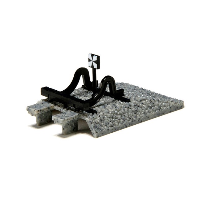 - 付属の車止め標識は板状の物を新規に製作、また車止め部の手前に設置する緩衝用枕木も付属。