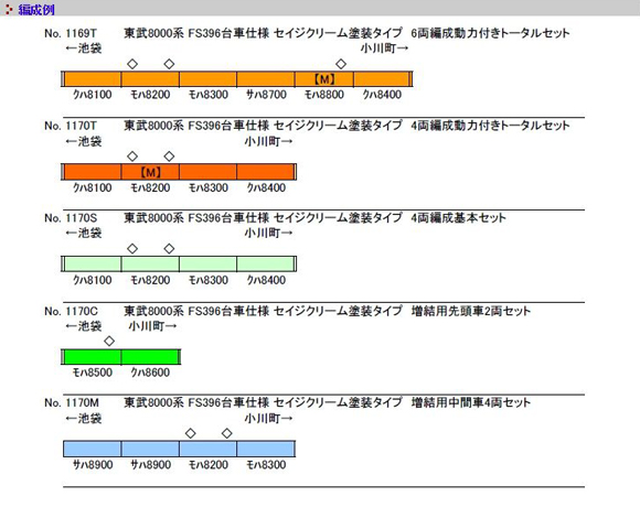 - 東武8000系 FS396台車仕様 セイジクリーム塗装タイプ 4両編成動力付きトータルセット(塗装済キット) [1170T]]
