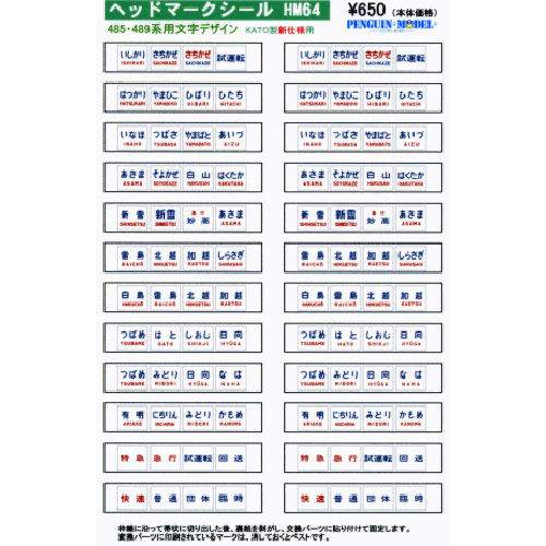 - ヘッドマークシール 485・489系用文字デザイン(KATO製新仕様用) [PG-HM64]]