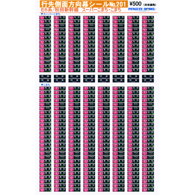 - 行先側面方向幕シール E6系/秋田新幹線 スーパーこまち・こまち [PG-201]]