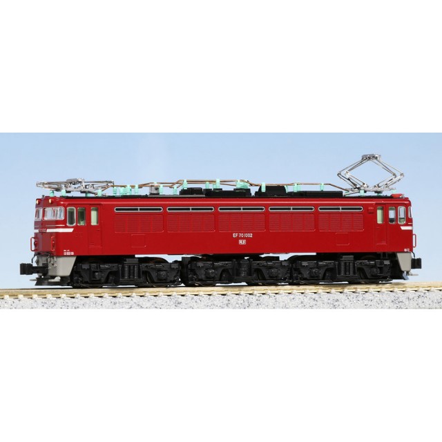 EF70 1000番台は昭和43年(1968)10月ダイヤ改正〈ヨン・サン・トオ〉で新設された、20系寝台特急「日本海」の牽引対応として0番台2次車から7両が改造され、ブレーキ増強対応を行った20系寝台特急客車を牽引する高速形のグループです。