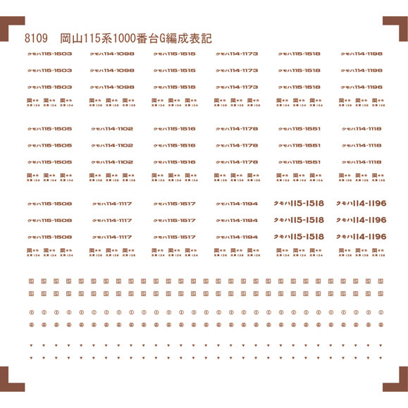 - 車体表記インレタ 岡山115系1000番台G編成表記(ブラウン) [8109B]]