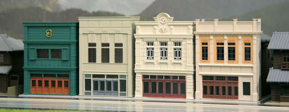 ● 角店以外の商店は、別売の「看板建築商店・正面交換キット」によりファサードを組替えることで、バリエーション豊かな街並みを作り出す事ができます。(23-471?23-474に適応)