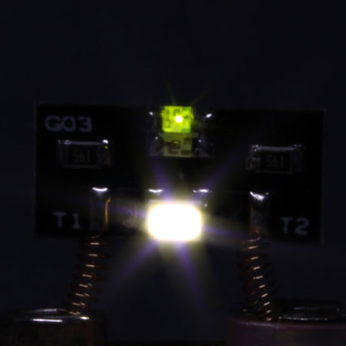 - Nゲージ光り分けライト基板 ヘッドライト 白色+標識灯 緑色 [G-04]]
