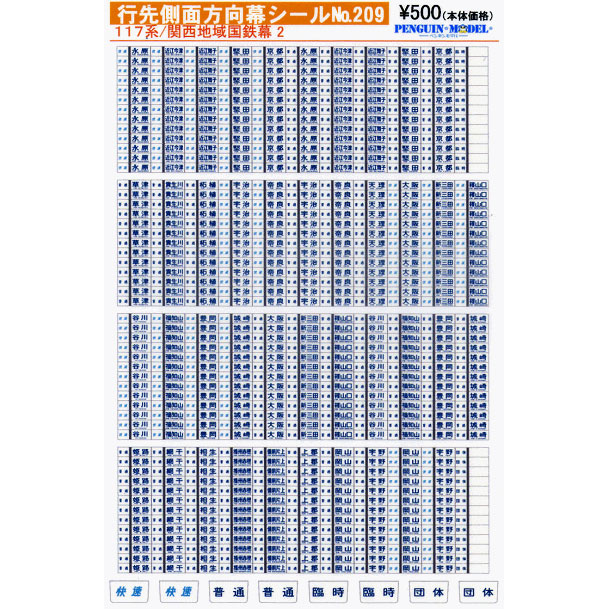 - 行先側面方向幕シール 117系/関西地域国鉄幕2 [PG-209]]