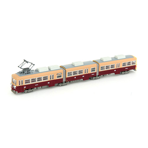 筑豊電気鉄道株式会社は北九州市の副都心・黒崎から中間市を経て直方市を結ぶ西鉄グループの鉄道会社です。1956(昭和31)年の開業当時、自社車両を保有せず西鉄北九州線より借り入れた車両と同線からの乗り入れで運行され、その当時の車体色が「西鉄マルーン&ベージュ」でした。1975(昭和50)年に西鉄福岡市内線と西鉄北九州線の2両連接車を購入、3両連接車に改造し1977(昭和52)年に2000形として運行を開始しましたが、その時の車体色が「黄電(きなでん)」でした。黄電2000形は後に、「トレインボー電車」として7編成全てが順次車体色を変更し、2009(平成21)年に黄電塗装は姿を消しましたが、2018(平成30)年11月、最後に残る2003号の車体を開業当時塗装「西鉄マルーン&ベージュ」と初代2000形塗装「黄電」の2パターンで塗り分けて復活!人気を博しております。今回は、2パターンの塗装を復活した2003号と、トレインボー電車の第1弾として登場した2001号(紫)を製品化。