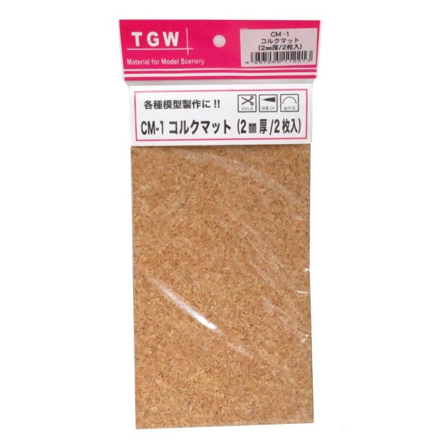 コルクマット(2mm厚/2枚入) [CM-1]] メーカー 津川洋行 品番 CM-1 商品名 コルクマット(2mm厚/2枚入) [CM-1]] 定価(税込) ¥ 550 特価(税込) ¥ 440 送料区分 ネコポス対応 ネコポス対応 配送料:330円 ネコポス対応商品。 利用規約(送料説明)の表示 ※詳しい送料説明 オンラインショップの在庫状況 オンラインショップ 在庫わずか 店舗別の在庫状況 大阪日本橋店 在庫わずか 東京秋葉原店 在庫切れ 福岡博多店 在庫切れ 【有料】ラッピングサービス ラッピングサービスを希望される場合は、商品と一緒に対応するサイズのラッピングサービスをカートに入れてご注文ください。 ラッピングをご希望の方はこちら 数量 個 この商品へのお問い合わせ 鉄道模型・ジオラマ・建築模型・各種模型の地面や道路などの製作に最適な素材です。天然素材を原料に、切る、曲げる、接着などの加工が簡単にできます。製品寸法(約):長さ120mm×幅220mm×厚さ2mm. 入数:2枚入[注意]*天然素材のため、目の細かさの違いや反りがあります。*裁断の都合上、寸法に若干のバラツキがあります。*コルクマットを発泡スチロール、ポリスチレンフォームに直接接着するとき、有機溶剤系接着剤を使用すると溶解や変形することがありますのでご注意ください。