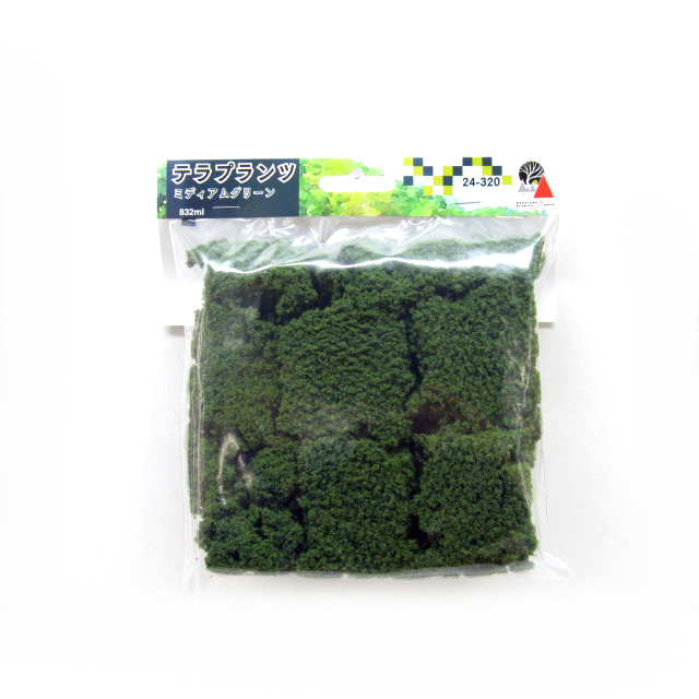 ・地面に生える草から木々の葉などの再現に適した素材です。地面に直接使用したり、樹木素材などに用いて木の再現が可能です
