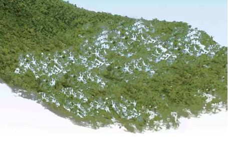 【地表~中程度の被覆】ざっくりとカットしたシートを薄くレース状に伸ばし、シーニックグルー(品番24-390)でレイアウトに貼り付ける。