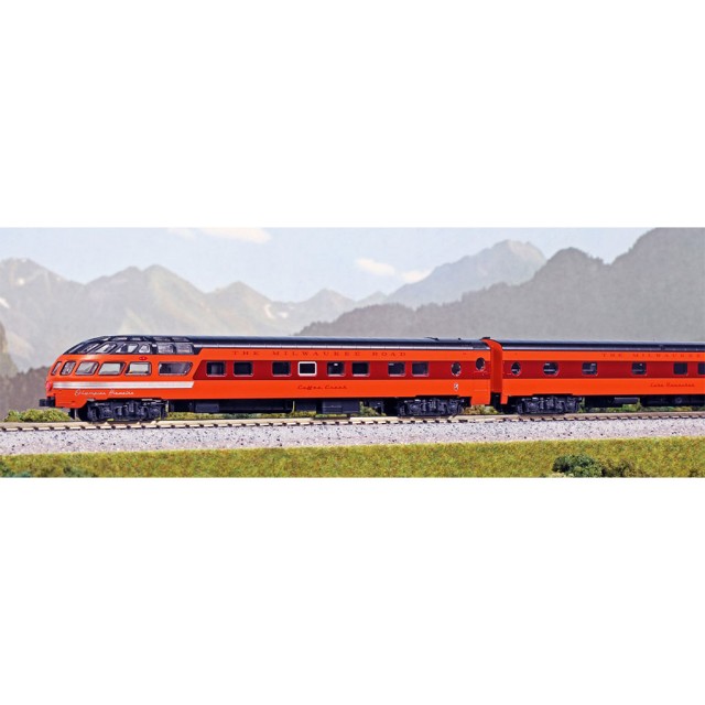 ● ミルウォーキー・ロード〈オリンピアン・ハイアワッサ〉 ・1953年?1955年頃に見られた、スーパードームカーが組み込まれた編成を製品化。 ・スカイトップラウンジカ―、スーパードームカーをはじめ、各窓は車体と段差のないフラットな形状を再現。 ・スーパードームカーの平滑で内部を見通せるクリアな曲線窓を再現。 ・テールライト及びエンド両側面のマーカーは赤色に点灯。 ・ハイアワッサ号の特徴的なエンブレムを美しく再現。 ・付属品:解放ピン、20-000 直線線路248mm 9本、20-048 車止め線路C50mm 1本