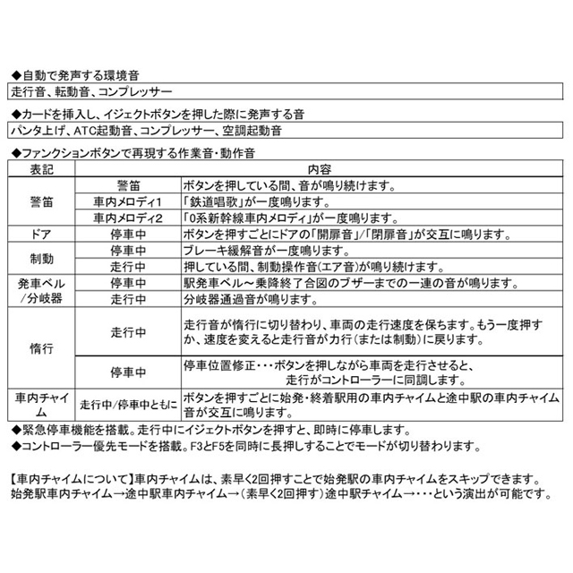 ・走行音は加速中に床下の主回路から発するノイズや車体きしみ音、高速走行時はかつてのウェルド(レール同士の溶接部分)通過音も再現