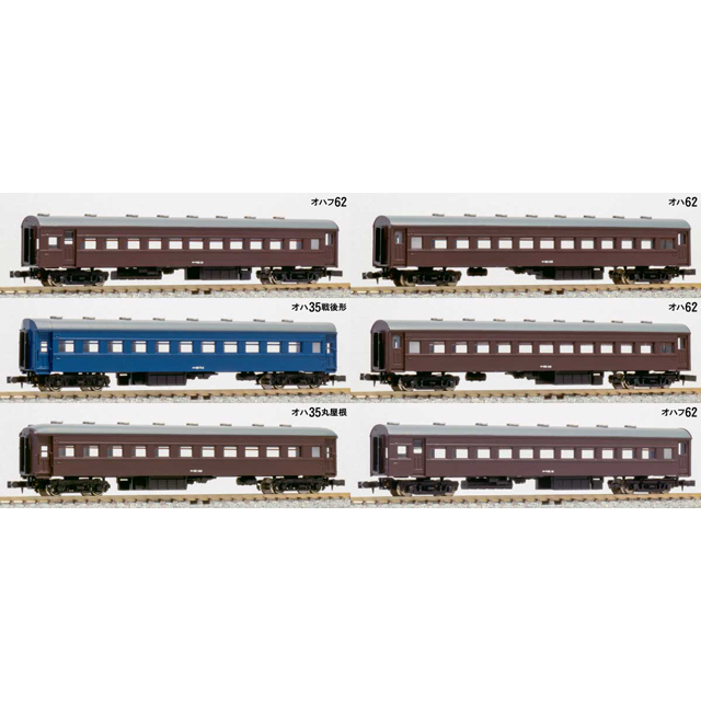 本セットに付属しますオハ62形・オハフ62形は北海道向けに製造され、オハ61形・オハフ61形をベースに耐寒構造強化がされ、客室窓の2重窓化、蓄電池箱の大型化、車軸発電機が歯車駆動式となっているのが実車の特徴です。