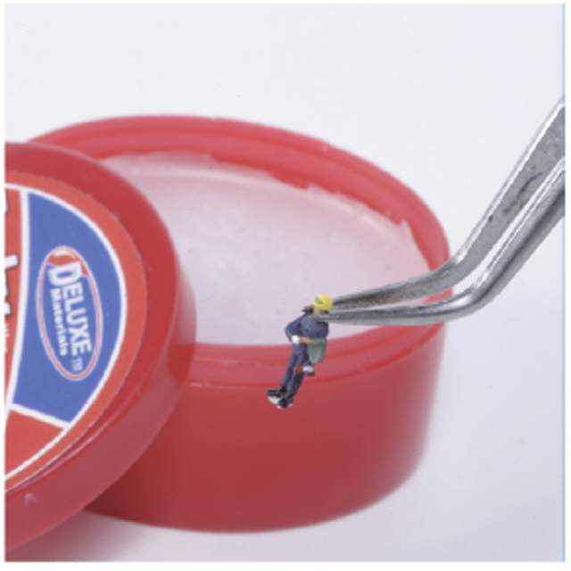 ・人形や自動車、アクセサリー類の仮留め以外に、組立途中の部品の仮押さえや、ピンセット・ドライバーに塗布して細かい部品の紛失対策への活用も可能